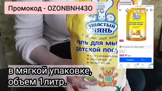 Гель для мытья детской посуды "Ушастый нянь". Распаковка Ozon. Промокод.