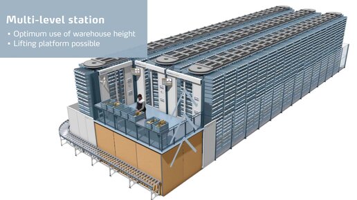 Горизонтальный автоматизированный склад для низких по высоте помещений
