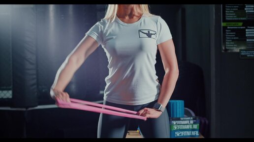 Отведение-подъём на плечи с фитнес резинкой стоя