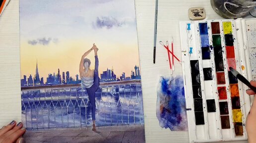 Закат в Дубаи Акварелью. Как нарисовать закат. Техника А-Ля-Примо.