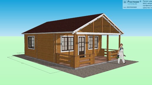 Проект дома из бруса 6 на 8.5 метра с террасой за 1.1 млн рублей