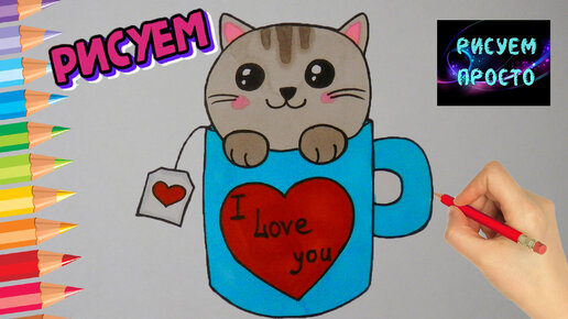 Как нарисовать КОТА В КРУЖКЕ на день Св.Валентина/ How to draw a CAT in a CIRCLE