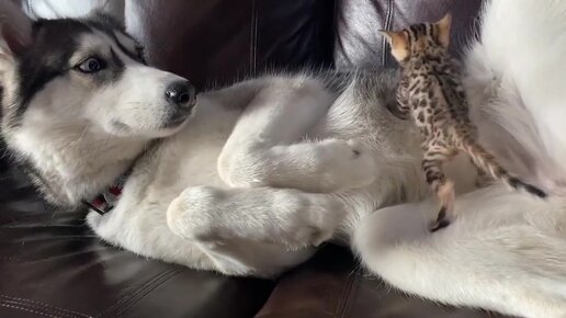 Большой пëс и маленький котенок, милота🥰🥰🥰
