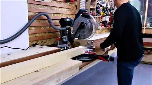 Сделал верстак для торцовочной пилы с упорами и местами хранения.