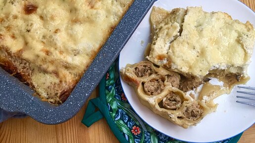Каннеллони или запеканка с фаршем и грибами в сливочном соусе.