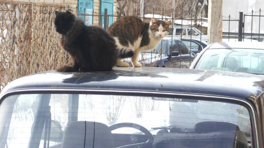 Дворовые коты хорошо устроились на крыше «Жигулей»