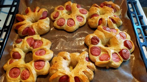 Надюша в 6 лет стряпает сосиски в тесте, да не простые. Почему они блестят?
