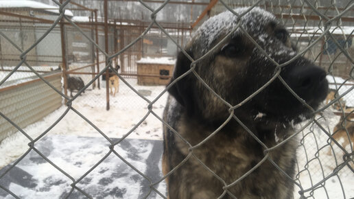 Голодных собак засыпало снегом