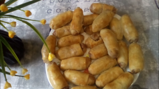 Пресное тесто и фарш - рулетики просто объедение!