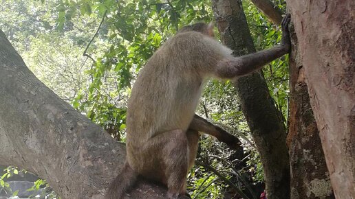 Обезьянка на дереве. Экскурсия в Индии. Гоа.