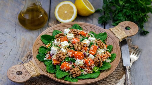🥗 Салат с булгуром, печеной тыквой и сыром фета – видео рецепт