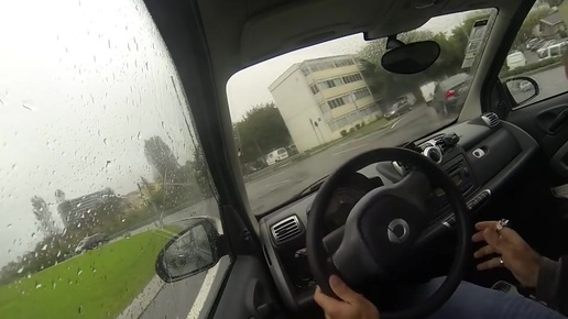 Смарт валит боком по кольцу в городе. Смарт дрифтит.