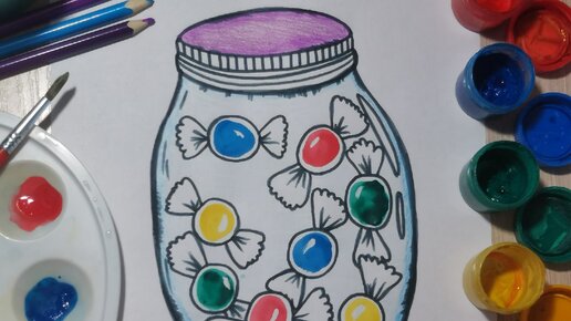 Рисуем пальчиками. Конфетки в баночке. Легкие рисунки пошагово для детей