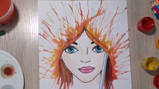 Девушка рисунок. Интересная техника рисования. Рисуем волосы трубочкой.