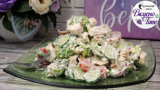 Вкусный, сытный и полезный салат с курицей, овощами и сыром Фета. Гости просят у меня этот рецепт