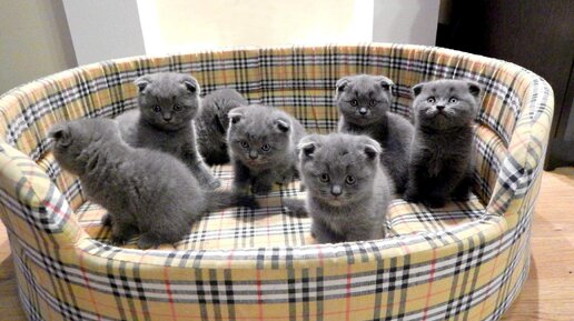 Шотландская кошка родила 7 котят