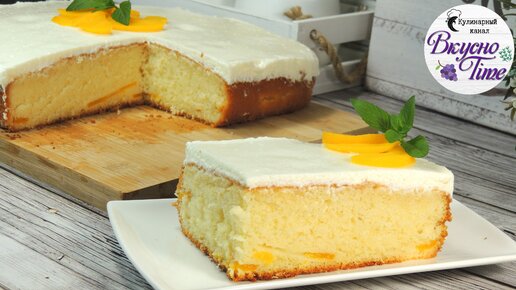 Пирог с персиками и сметанным кремом. Нежный и сочный. Бюджетный рецепт