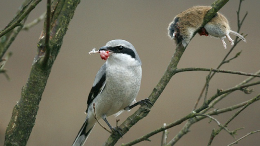 Птица-палач.Серый сорокопут или Большой сорокопут.