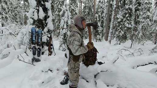 ОДИН В ТАЙГЕ. ПОИСК ИЗБУШКИ ХИМДЫМОВЦЕВ. ТЯЖЁЛЫЙ ПОХОД К ЦЕЛИ. ПРИВАЛ В КРАСИВОМ ЛЕСУ. РАЗЖИГАЮ КОСТЁР.