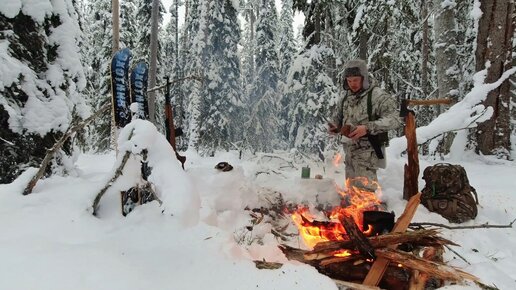 СПАСАЮСЬ В ТАЙГЕ У ТАЁЖНОГО КОСТРА. ОБЕД В ЛЕСУ. ЕЛОВЫЙ ЧАЙ С МОРОШКОЙ. ПОИСК СТАРОЙ ИЗБУШКИ. ПОХОД В ЛЕС НА ПОИСКИ.