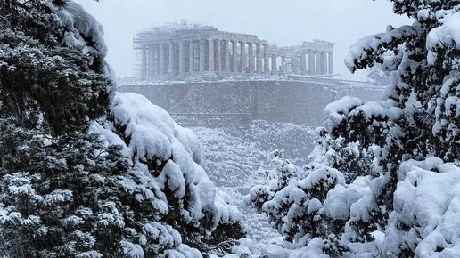 Заснеженный Акрополь в Афинах показали на видео. Всемирно известные древности в непривычном антураже спешат запечатлеть многие,