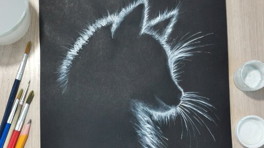 Кот в полумраке. Рисунок пошагово. Рисование для детей и для начинающих