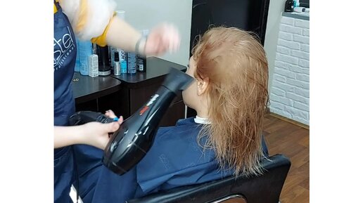 Востребрванное окрашивание в блонд седых волос, простая укладка на среднюю длину волос