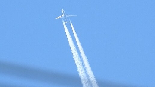 Самолёт в зимнем небе за окном в деревне