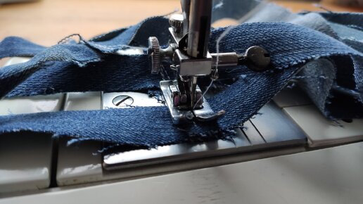 Собрала все старые джинсы в доме и сделала красивый коврик. Хоть на продажу выставляй