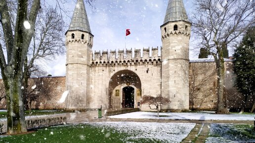 Дворец султанов Топкапы в заснеженном Стамбуле