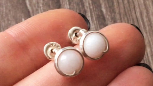 Серьги гвоздики с белым нефритом #серьги #гвоздики #пуссеты #нефрит #белый