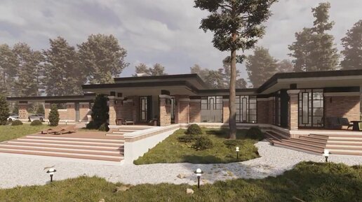Проект одноэтажного дома в стиле Райта. Проект дома из керамики. Дом в стиле Райта 212 м. кв.