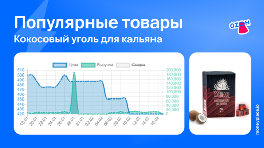 Продажи кокосового угля для кальяна на Ozon. Анализ маркетплейса