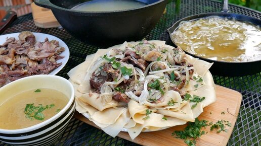 Бешбармак По-Казахски из гуся. Сытное мясное блюдо в казане.