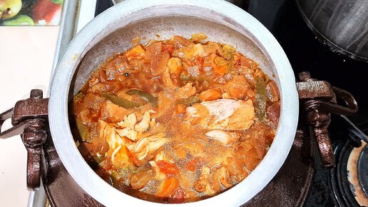 Тушеная куриная грудка с овощами в афганском казане.