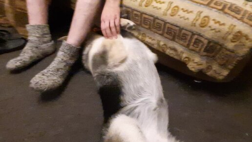 Две ноги, четыре лапы. Пес и хозяин отдыхают, каждый по-своему