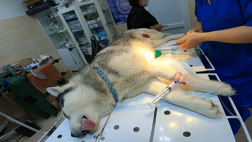 Повёз хаски на операцию в ветклинику, будем зашивать лапу.