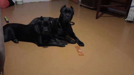 Матриархат в семье: большая собака не даёт щенку игрушки