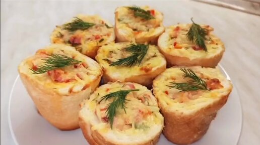 Хрустящая закуска из багета с начинкой/хлебные стаканчики "Пенечки " из багета