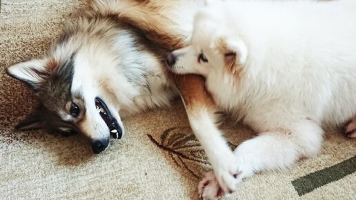 Просто любимые собаки играют дома, просто маленькое счастье.