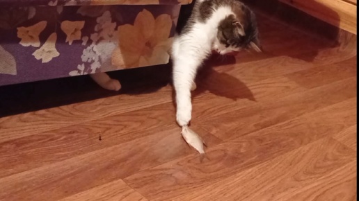 Обнаглевшая сытая кошка играеться с рыбой😊