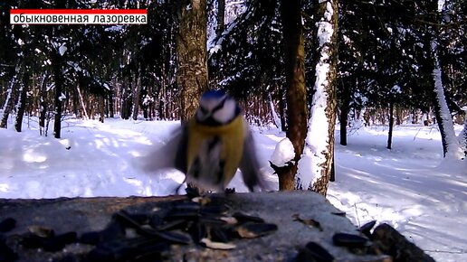 Поставили камеру на кормушку в лесу. Кто туда прилетал.