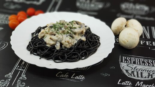 Купила необычные итальянские спагетти за 300 руб с чернилами каракатицы и приготовила с очень вкусным сливочно-грибным соусом