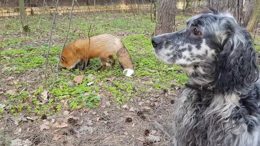 Алиса - лиса. Как лиса себя ведет с молодой собакой..mp4