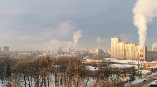Вид на город с нашего балкона. Мороз и пар накрыли город