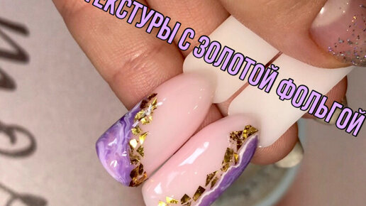 Текстуры и золотая фольга на ногтях.Тренд 2021.