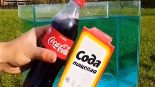 Эксперимент: Пищевая сода и кока-кола в аквариуме с водой.