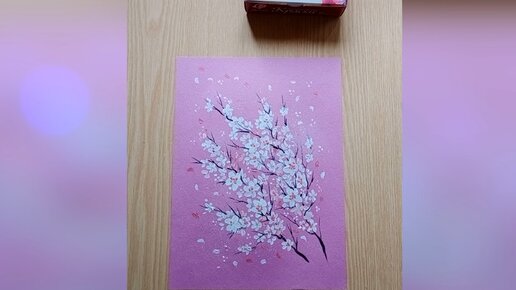 Процесс рисования ветки сакуры акриловыми красками