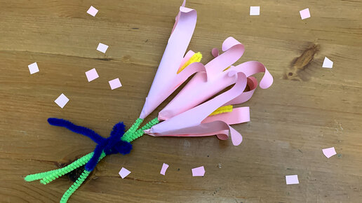 Простой букет цветов из бумаги в подарок на 8 марта.
