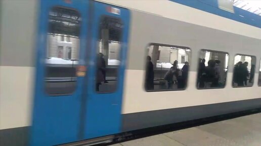 Беларусь. Проехали на быстром поезде "Штадлер" (скорость до 160 км/ч). Показываю поезд и снежные виды за окном